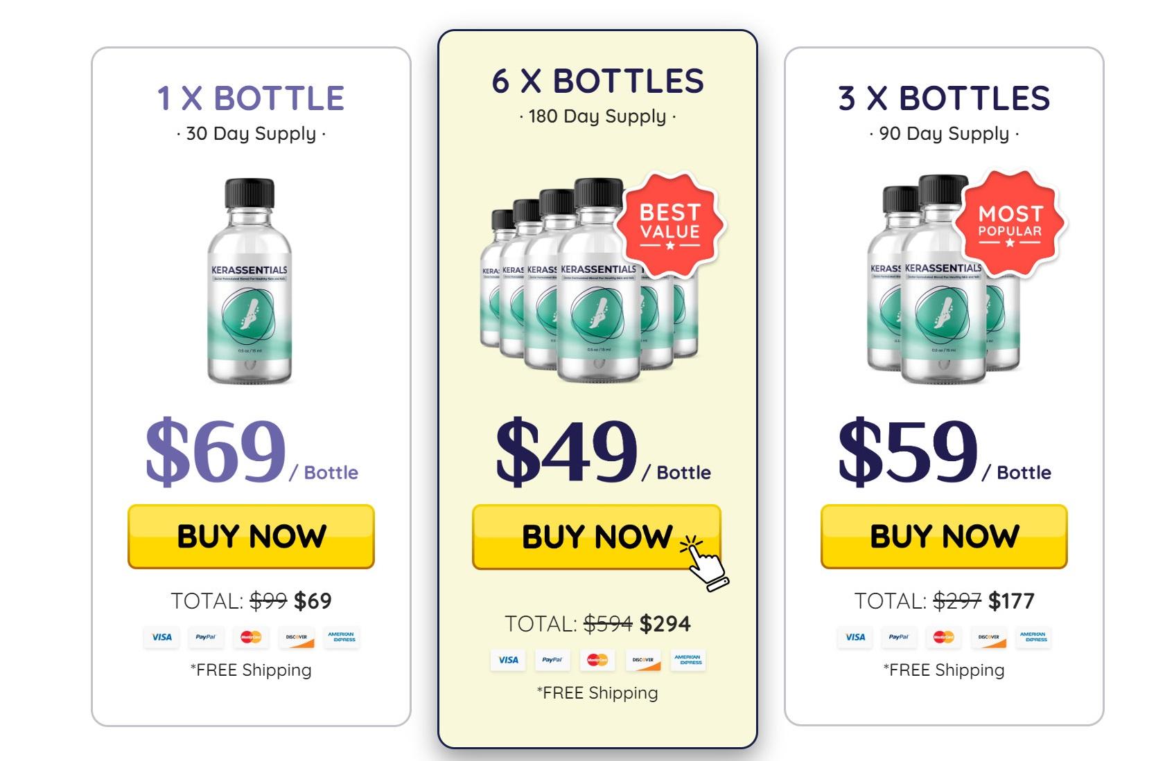 - Kerassentials 180-days supply x 6 containers for $49/ + totally free shipping