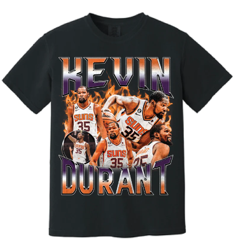 plaid style shirts or a denim jacket, or even pair it with some animal print pants. This will create a unique and individual look that showcases your personality and fashion sIn conclusion, the Kevin Durant Phoenix Suns 90's style bootleg tee is a versatile piece of NBA merchandise that can add some serious style to your wardrobe. Whether you're going for a casual or a more formal look, there are many ways to incorporate this tee into your outfit. So, go ahead and experiment with different styles and combinations, and have fun with your fashion!Make a statement on game day with our unique and exclusive Kevin Durant Phoenix Suns 90s shirts Style Bootleg Tee collection, available only in our vintage tees shop. Shop now and elevate your style.
