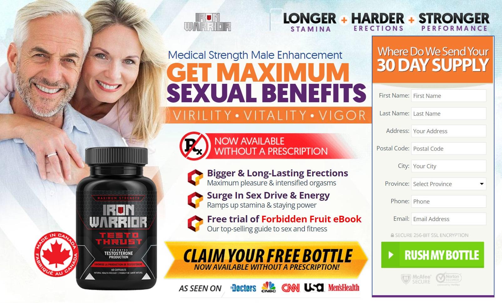 Iron Warrior Testo Thrust Canada is a powerful male enhancement formula. It has all natural ingredients. It has all It helps to get harder & longer erection. Visit Iron Warrior Testo Thrust Male Enhancement official website & get free trials in the CA.